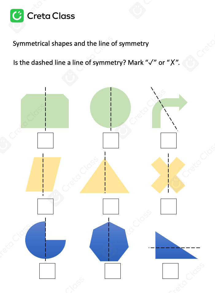Is the dashed line a line of symmetry? Mark “✓” or “✗”.